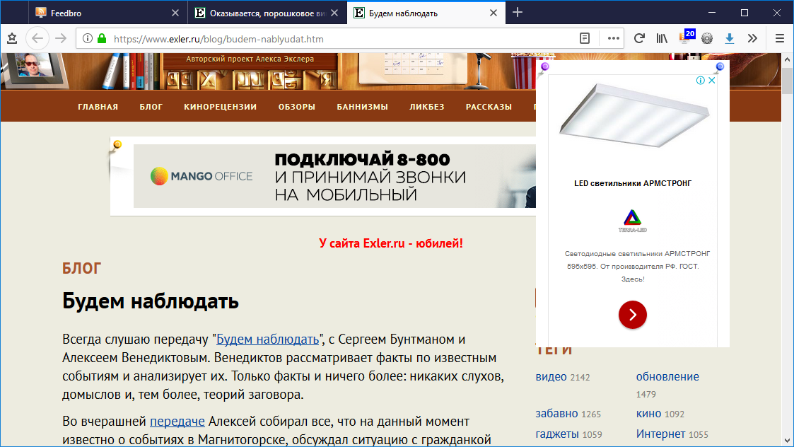 Алекс, не по теме треда, а по сайту. Иногда у меня реклама начинает на контент наползать - почему-то переключатель позиции fixed / relation перестаёт нормально отрабатывать...