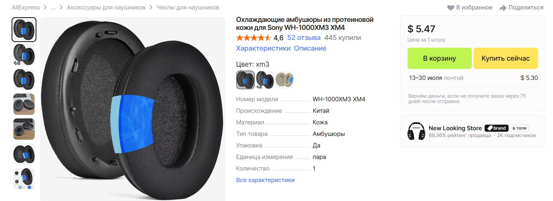 Я неделю назад приобрёл себе вот эти (для Sony WH-1000XM5), так как оригинальные ухи были практически невыносимы в жару 30+.