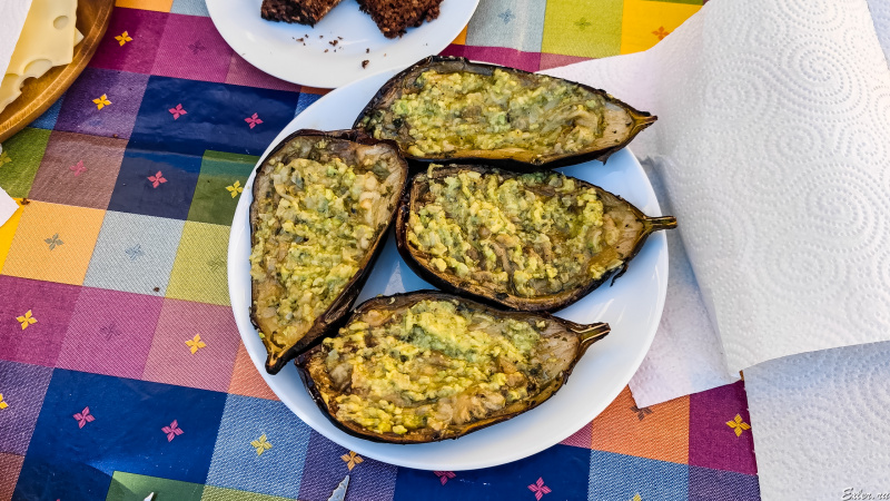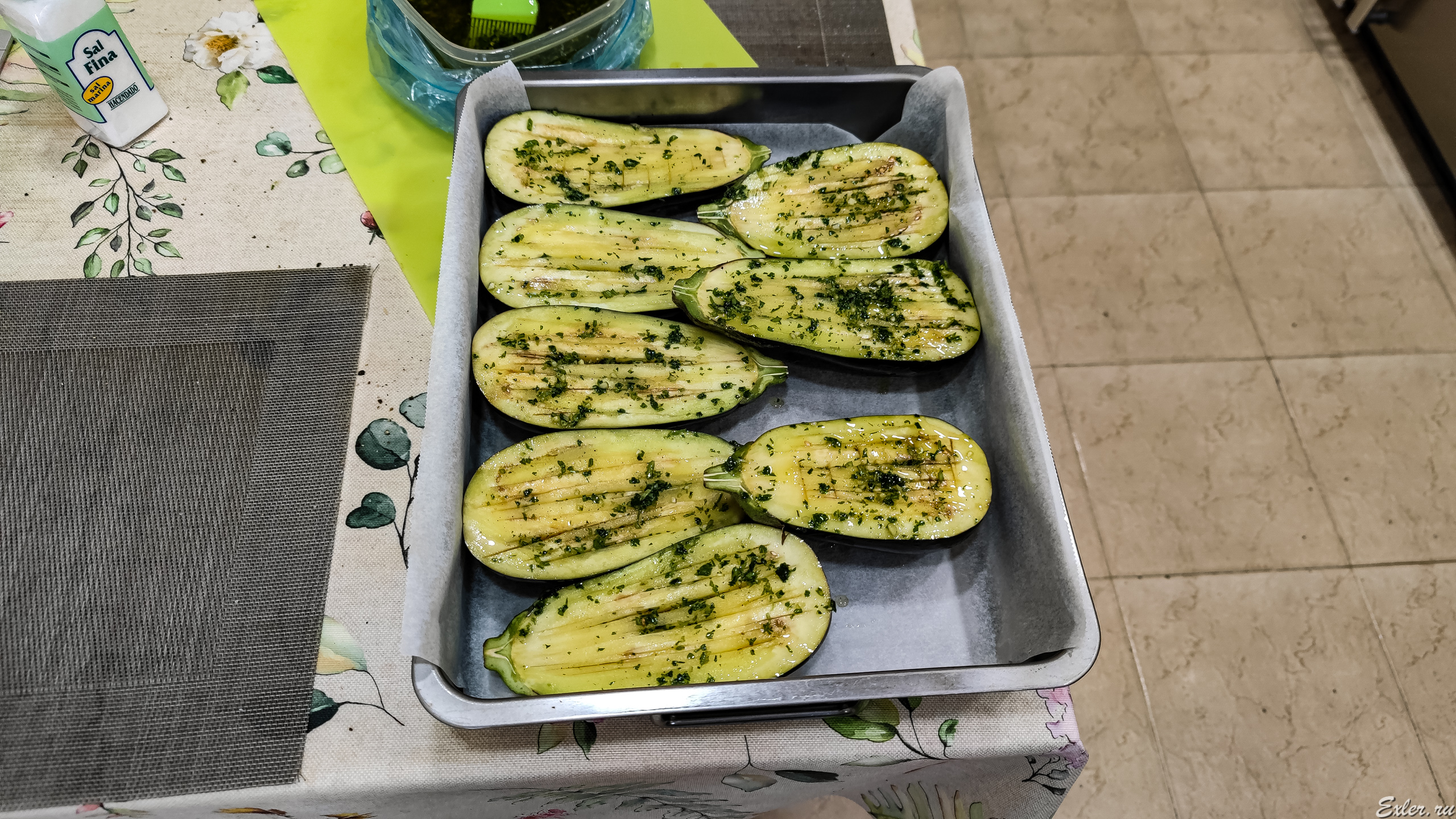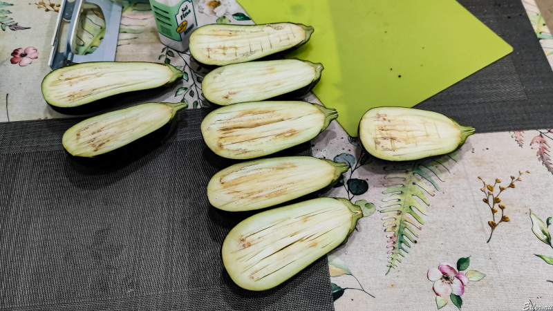 Единственно - в тексте "Баклажаны разрезаются поперек" а они таки разрезаются вдоль. Поперек - это как колбасу режут. По диаметру 😉