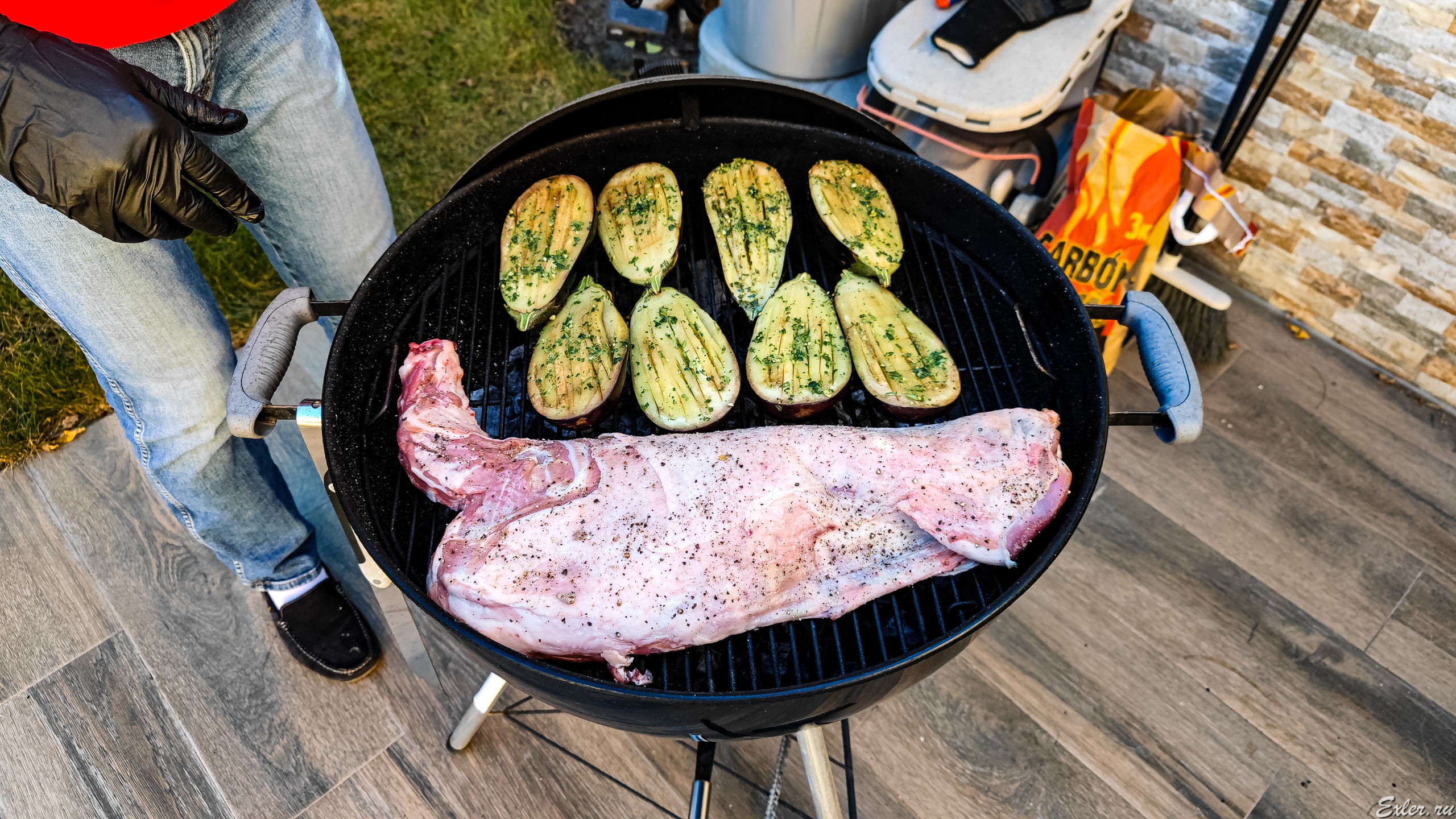Одновременно с козленком на том же гриле будем готовить баклажаны по новому рецепту.
