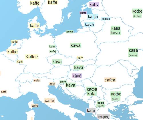 Кава — кофе на славянских языках, в частности на белорусском, украинском, польском, хорватском, чешском, словацком и сербском.