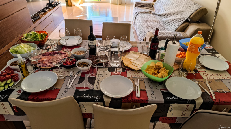 Стол к приему гостей готов, игристое и белое вино охлаждаются в холодильнике.