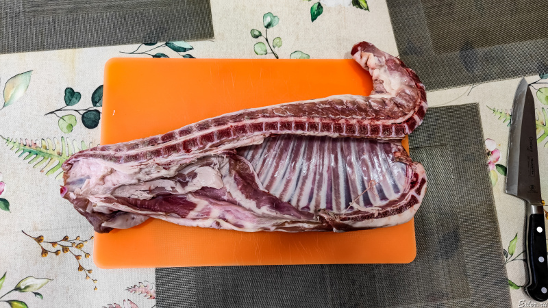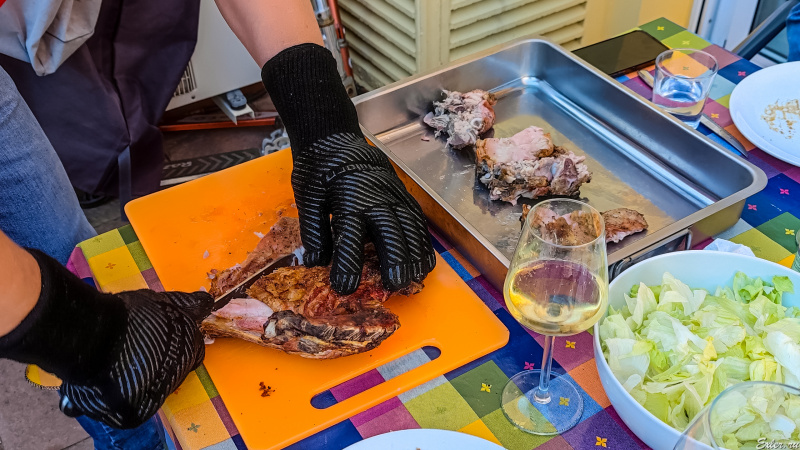 Пришли гости, Серхио принес главное блюдо сегодняшнего вечера - половинку козленка.