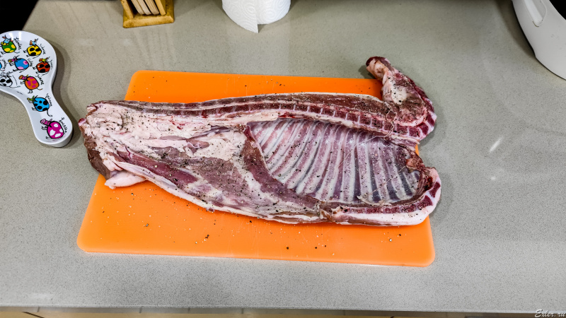 Ставим готовиться. При температуре в 180 градусов баклажанам требуется где-то 30 минут, козленку - порядка часа. У нас температура была ниже, так что в итоге баклажаны готовились где-то 40-60 минут (одни приготовились раньше, другие позже, потому что нагрев неравномерный), козленок готовился полтора часа: ближе к концу готовки мы добавили температуры, чтобы добиться хрустящей корочки.