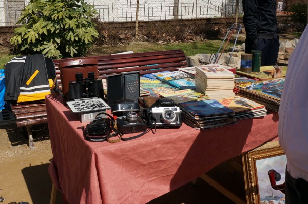 У нас если фотографировать блошиный рынок обязательно бы что то из спорта попалось бы на глаза типа старых гантелей , гирь , коньков и т. д.