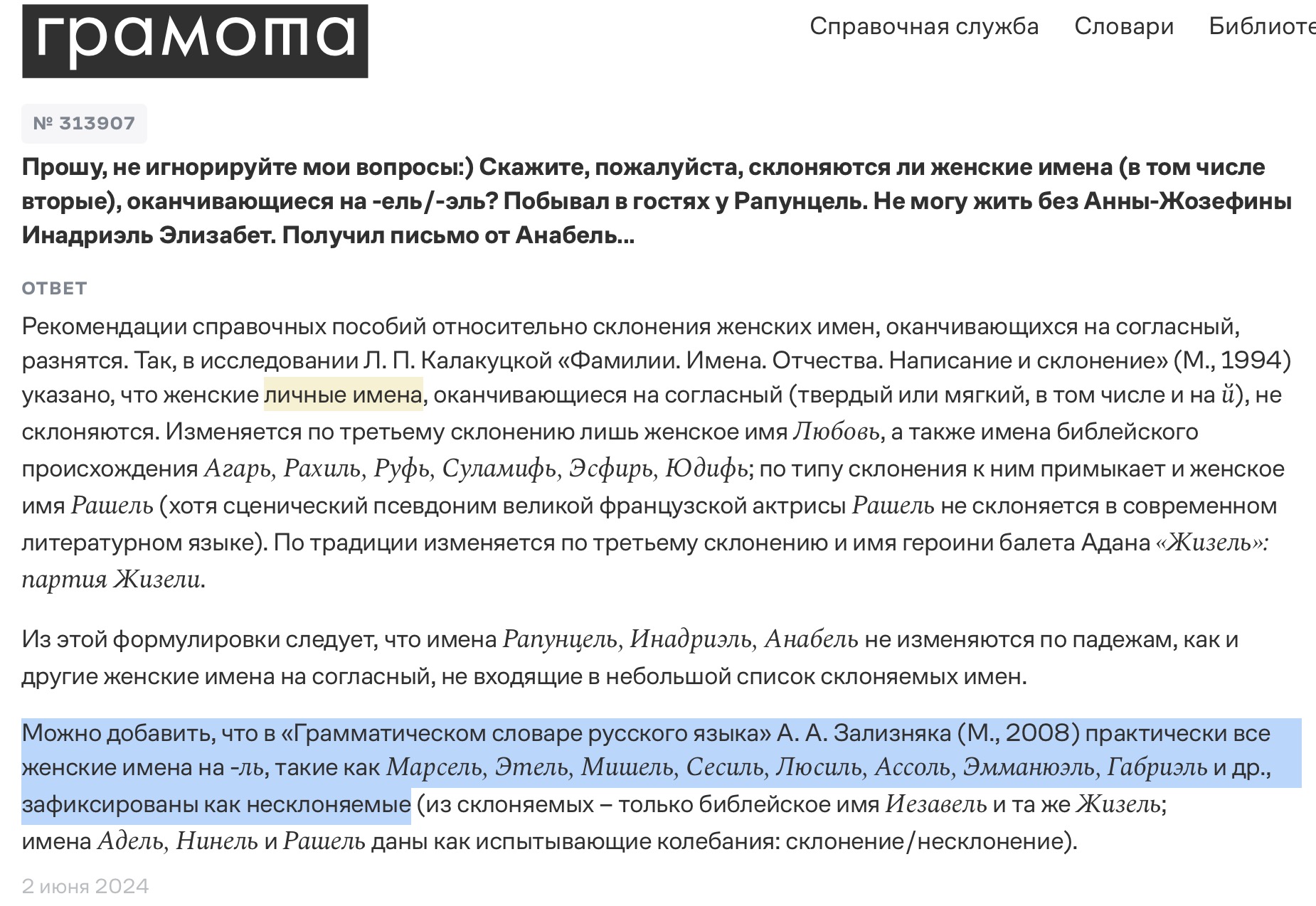2. Иностранные имена на согласный звук склоняются независимо от того, употребляются ли они самостоятельно или вместе с фамилией, например: романы Жюля Верна (не: «Жюль Верна»), песни Ива Монтана (не: «Ив Монтана»), рассказы Марка Твена, пьесы Джона Бойнтона Пристли, сказки Ханса Кристиана Андерсена, книга Пьера-Анри Симона...