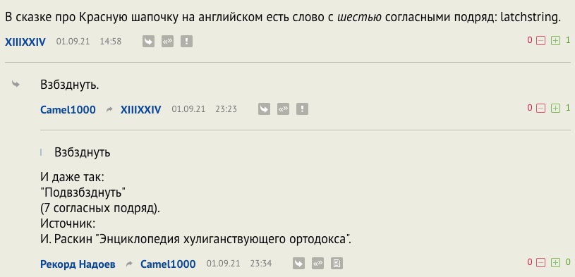 я вспомнил красивое слово: "взбзднул". 6 согласных подряд, чо!