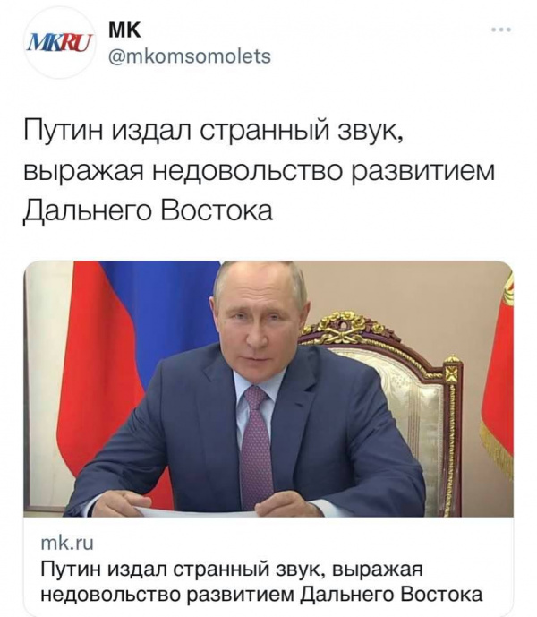 Путин издал странный звук, выражая недовольство развитием Дальнего Востока. Нет, не ИА "Панорама".