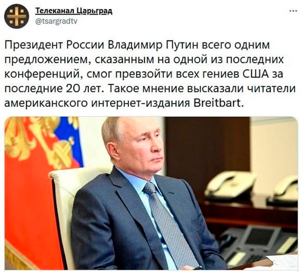 Следующая новость будет, что "Путин так моргнул левым глазом, что превзошёл всех китайских философов и мыслителей за последние 3000 лет".