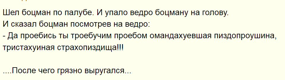 Так вот почему такая смертность в российской армии! А цель СВО - извести всех матерщинников. Все сразу стало понятно.