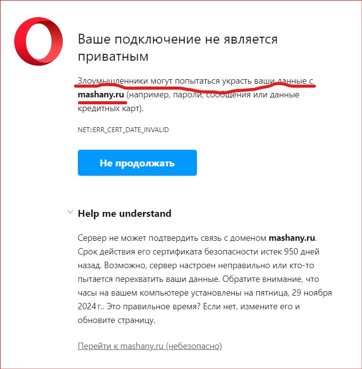 Все логично. Админ сайта рванул из раши весной 2022 года и с тех пор никто не обновлял сертификаты на сайте. А скрипт для автоматического обновления он не сделал.
