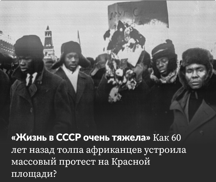 "60 лет назад толпа африканцев устроила массовый протест на Красной площади."
