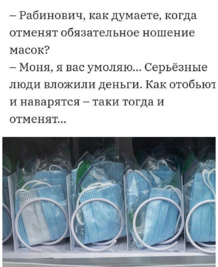 Один вирусолог, постоянно мелькающий в интернете, еще и шапку носить предложил: "На волосах ковид-19 долго держится.". Не удивлюсь, если заставят носить шапочки для душа, галоши, одноразовые плащи - одежда и обувь тоже ведь вся ковидом пропитываются.
