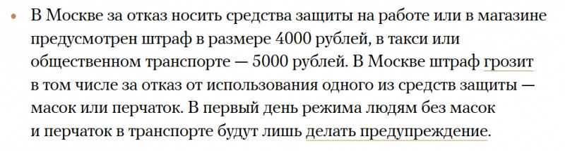 Вот и в Москве ввели этот законченный кретинизм - требование под угрозой штрафа носить перчатки. Как я уже говорил, маски - оно еще хоть как-то понятно. Маски вас ни от какого вируса не защитят, но защитят остальных от вашей слюны, если вы являетесь носителем вируса. (Хотя требовать их обязательно носить на улице, где вы держите дистанцию - тоже конкретный идиотизм.) А вот перчатки на ваших руках в быту никого ни от чего не защищают, не полезны в любом случае и конкретно вредны. А москвичей будут штрафовать за то, что они перчатки не носят. Какие же уроды сейчас принимают решения, это просто ужас какой-то...