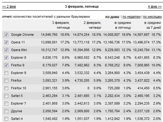 Кстати, статистика по Рунету показывает, насколько сильно Chrome поднялся и насколько FF проиграл с таким подходом к развитию проекта. Ну, оно вполне закономерно.