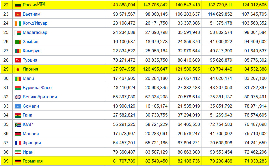 Вот таблица, в которую тебя ткнули носом, где выделены Германия и Япония