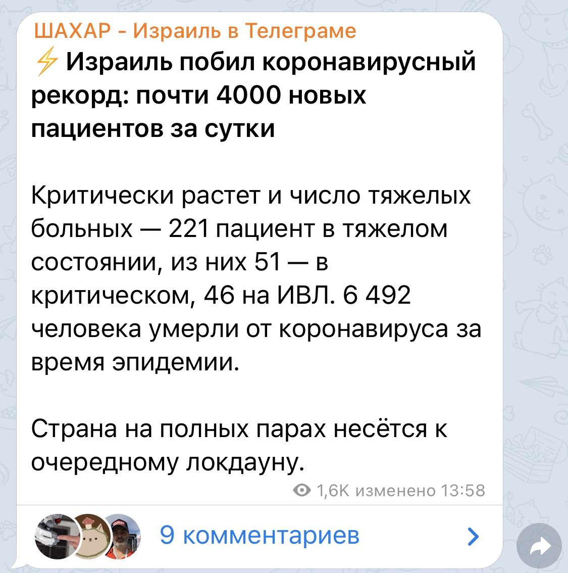 В Великобритании была похожая ситуация с ростом заболеваемости, как и в Израиле. Только не стали вводить локдаун, а, наоборот, почти все разрешили с 19 июля. И ничего, уже больше недели количество случаев уменьшается и довольно быстро, к удивлению ряда специалистов. Так что прогнозы по ковиду - дело неблагодаарное.