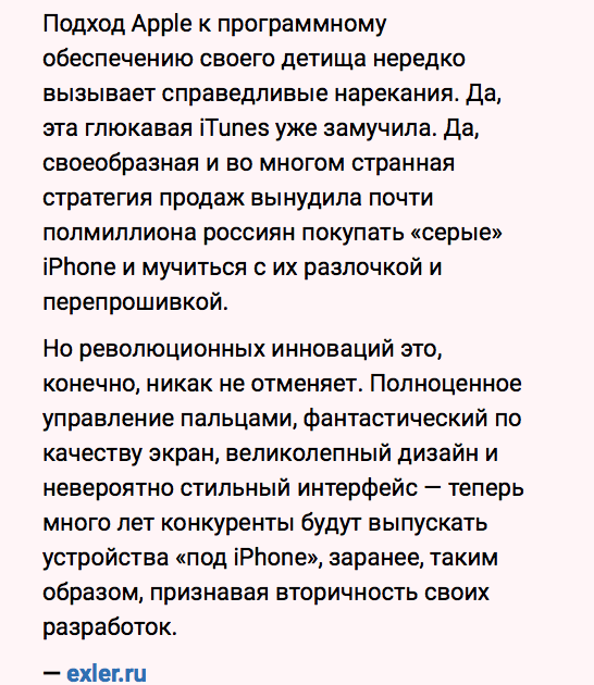 ЗЫ. Сам я не яблочник, всю жизнь (ну ладно, не всю, последние 7 лет) на андроиде, но объективности ради