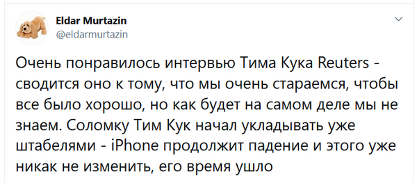 Пацаны, если у вас есть акции Apple, срочно сливайте их - время айфона ушло. ТАК СКАЗАЛ ЭЛЬДАР!