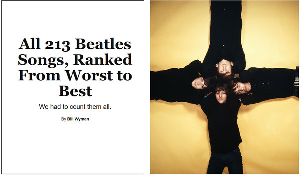 Любопытный проект - все 213 песен The Beatles, расставленные по ранжиру от худших к лучшим.