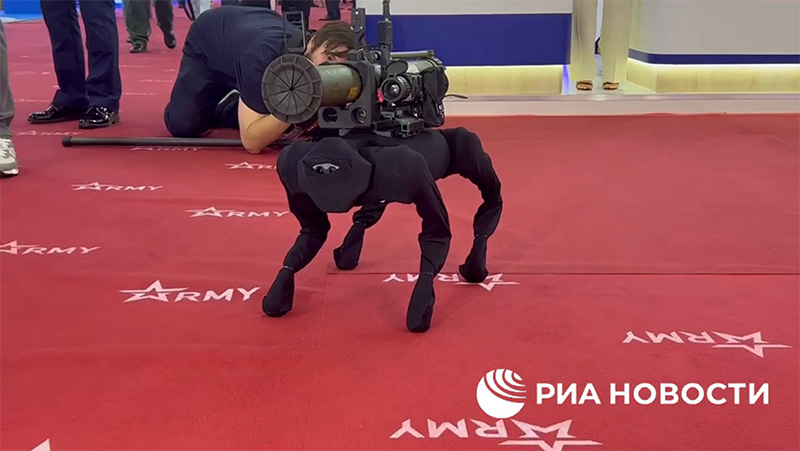 «На роботе-собаке устанавливают тактический лазерный автоматизированный комплекс, управление и контроль которыми осуществляют дистанционно оператором боевого расчета, находящимся в укрытии», — сказано в реферате изобретения.