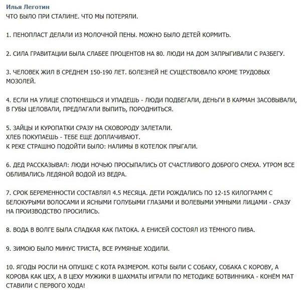 А всё что вы перечислили "бесплатное" в СССР - было вовсе не бесплатно, ибо за счёт нищенских зарплат У ВСЕХ, но при этом доставалось далеко НЕ ВСЕМ.