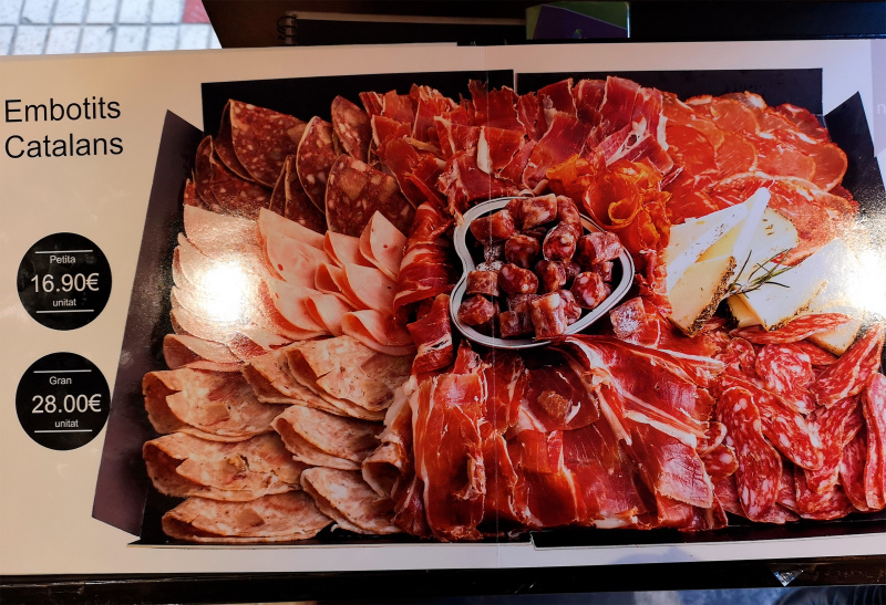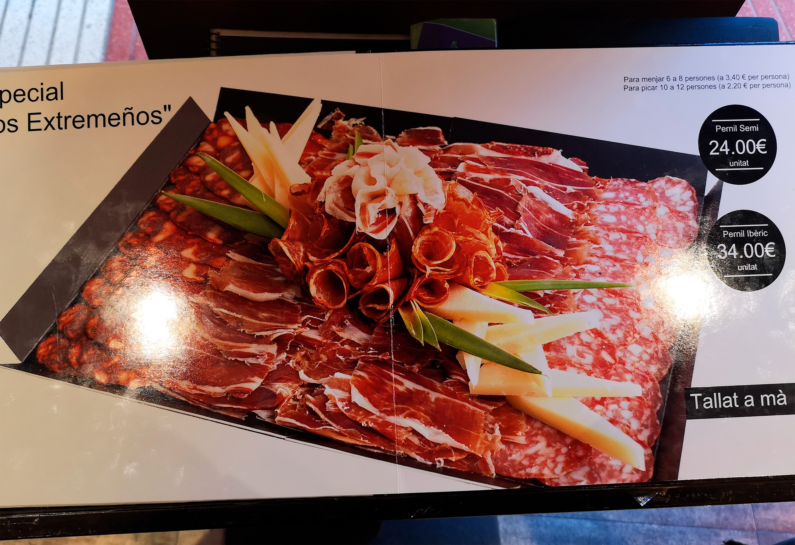 В этом магазине также можно заранее заказать какой-то из специальных наборов для праздничного стола. Хамон, колбасы и сыры. Посмотрите, прям произведения искусства. Причем их довольно активно заказывают, я несколько раз видел, как приходили и забирали по паре-тройке уже готовых наоборов. Они делаются только под заказ, чтобы были максимально свежими.