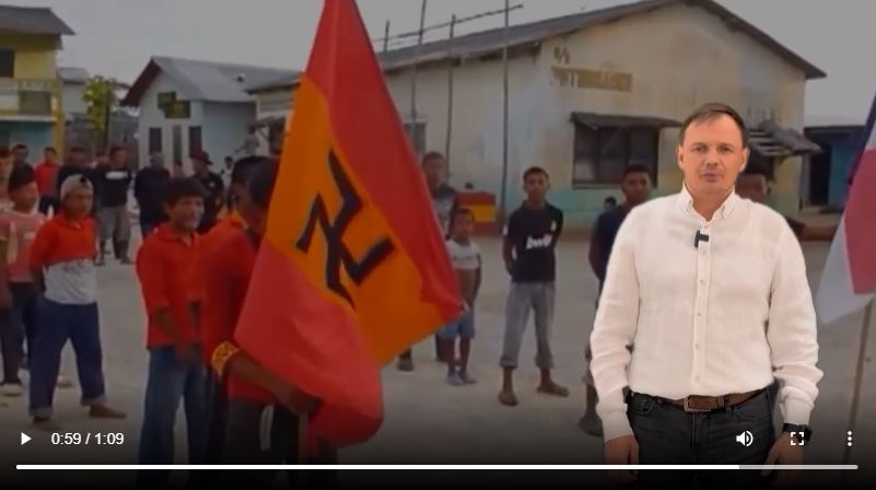 Свастика существовала давно задолго до нацистов. Скорее всего кадры из Индии. Там много где можно увидеть страинную свастику. Это символ удачи во многих азиатских странах.