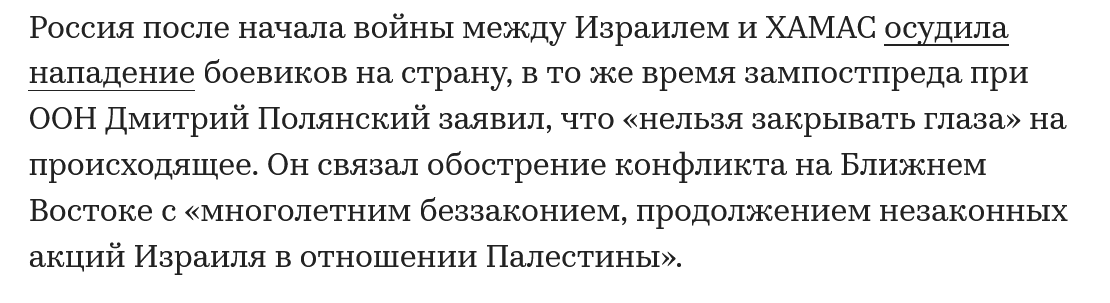 Сегодня в Москву в очередной раз приедут лучшие друзья Путина и его шайки - руководство террористической организации "Хамас". Разумеется, обсудят гуманитарные вопросы: сколько еще денег Пыня отвалит террористам на их священную борьбу с евреями, также, возможно, еще получат какое-то оружие. Пыня чисто для проформы попросит освободить каких-то из захваченных во время нападения 7 октября россиян, но мы прекрасно понимаем, что ему на этих россиян насрать в соответствующий чемоданчик. "Хамас" приезжал в гости вскоре после теракта 7 октября, Пыня там что-то вякнул про освобождение россиян, но никого тогда "Хамас" не освободил. Но оно и понятно: теракт 7 октября произошел при полной поддержке РФ "Хамаса". Путину это обострение обстановки и последующие военные действия были очень даже выгодны: они отвлекали внимание от войны в Украине, также при этом была сокращена помощь Украине. Полностью роль РФ в том, что произошло 7 октября, пока не изучена, но наверняка все это в конце концов станет известно.
