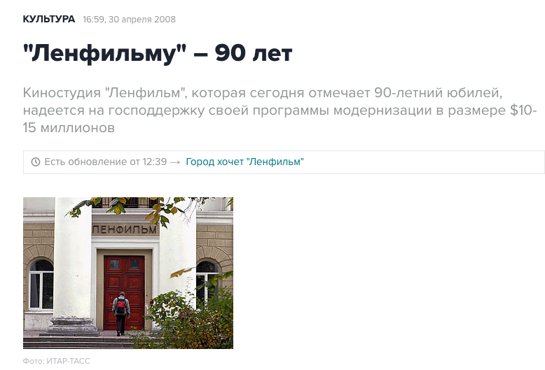 Что-что, а помощь Ленфильму всегда выдавали. Недавно выделили еще миллиард рублей из бюджета на оплату долгов студии перед кредиторами.