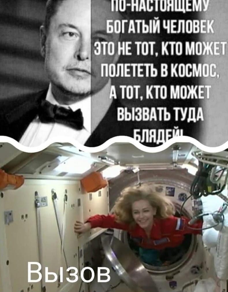 Смех смехом, но вот эта отправка совершенно левых людей на МКС за государственные бабки -- это вообще то уголовная статья "нецелевое использование государственных средств" в чистом виде. Позорное событие для российской космонавтики. Тем более что совершенно непонятно чем тут вообще гордиться -- тем что они там что то на камеру поснимают? Да, это конечно большой прорыв, типа исполнившейся мечты Рогозина -- росписи ракеты под хохлому. Следущую наверное под гжель распишут. Тут да, тут Маску крыть нечем, обскакали)