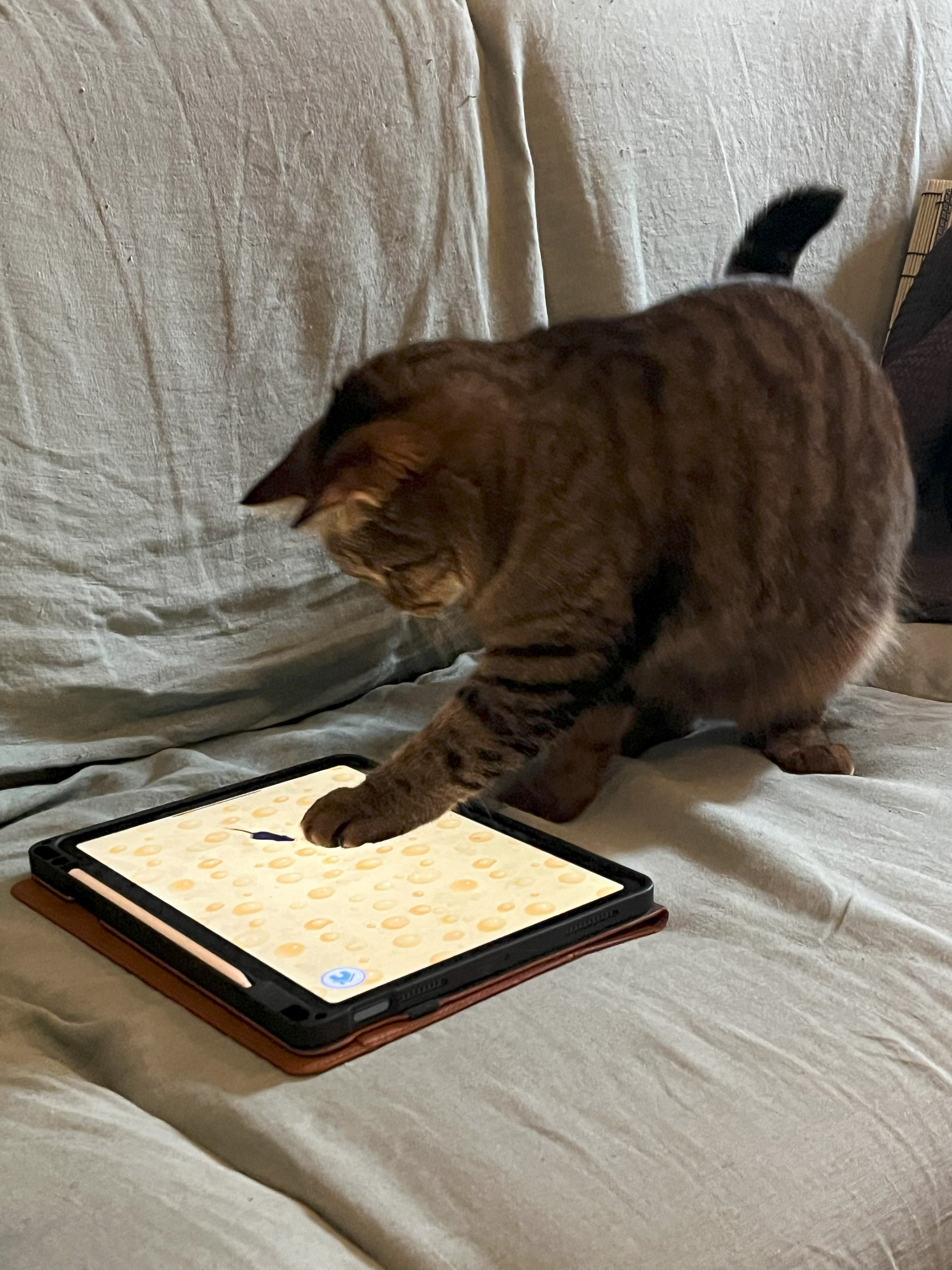 Везёт. Моё требует играть исключительно с человеком, вся эта механика/планшеты/висюльки вообще никак.Разве что CatTV смотрит когда засыпает.