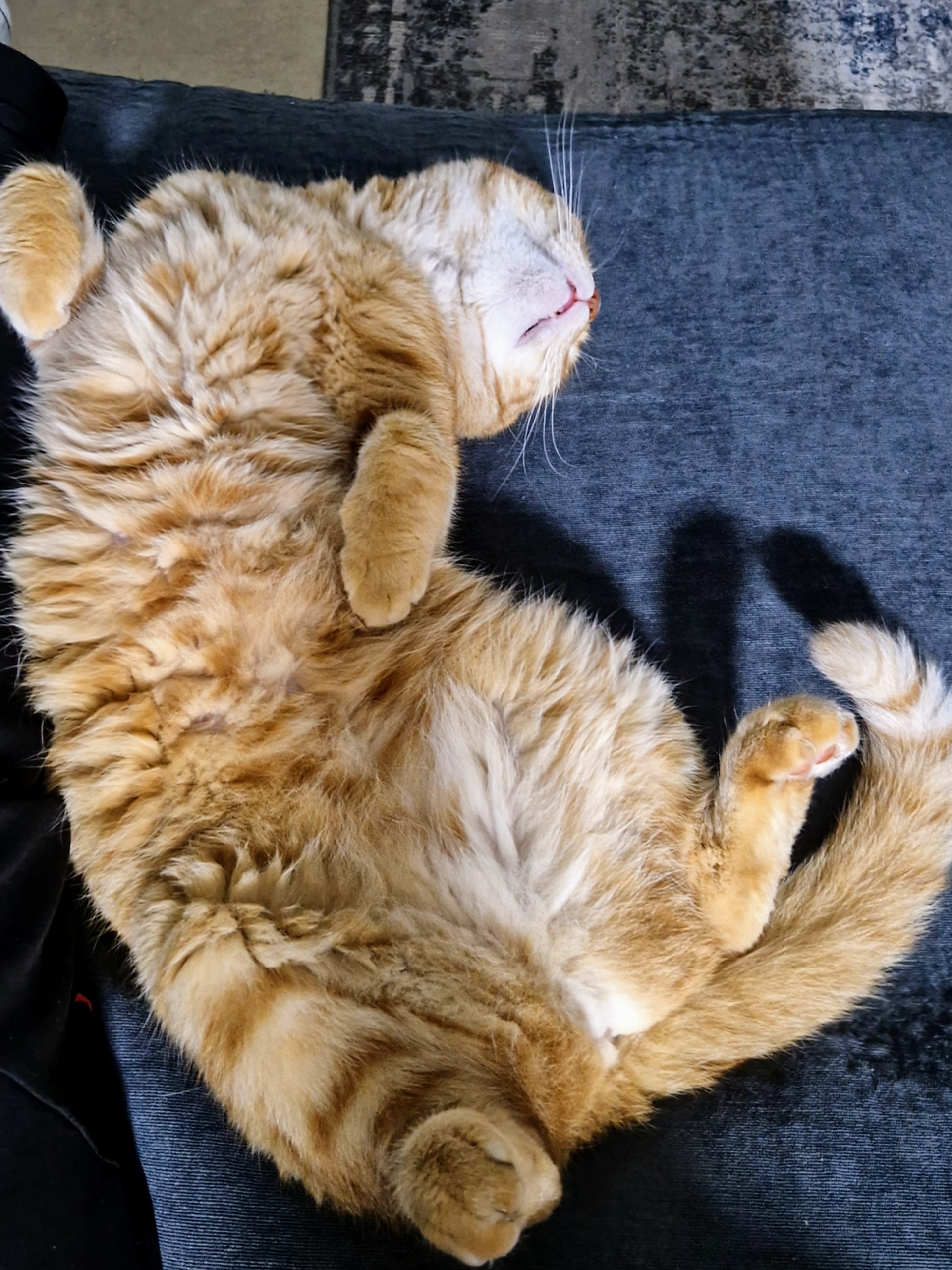 И еще любит спать на коленях, когда сижу за компьютерным столом. На клавиатуру внимания не обращает.