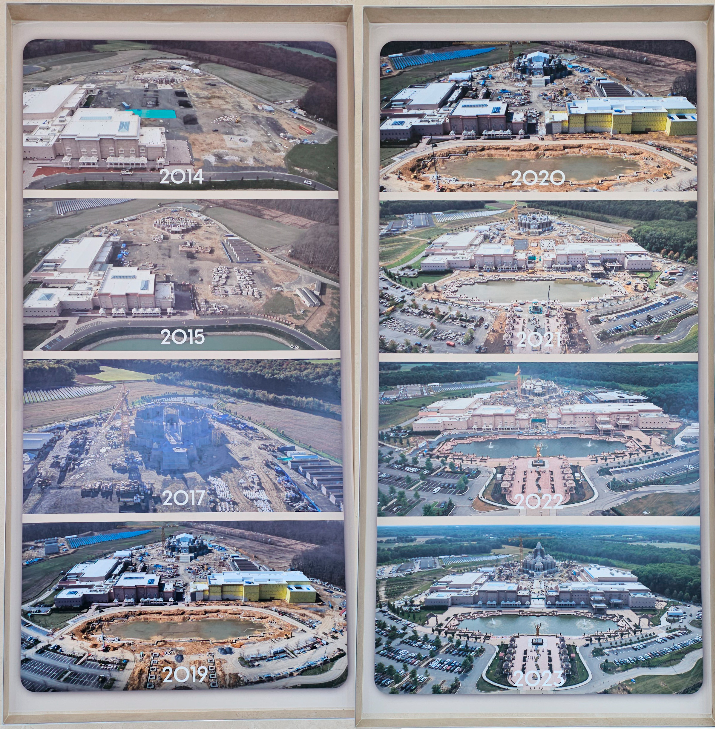 Мрамор для храма добывали в Италии - возможно, в Карраре, - при этом одна часть блоков обрабатывалась в Индии, а потом их привозили в США, а другая часть сразу поступала в США, где их обрабатывали под руководством индийских мастеров. На строительстве храма участвовало порядка 12500 волонтеров из США.