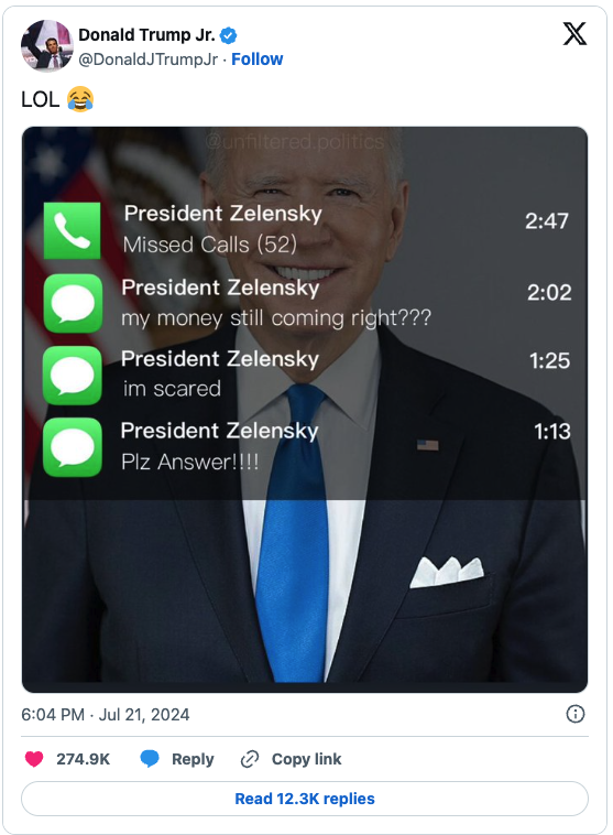 Вот если что наглядная иллюстрация, как в окружении Трампа смотрят на Украину и её руководителя. Едва ли обмен, который рассердил Трампа, что-то в этом изменит.