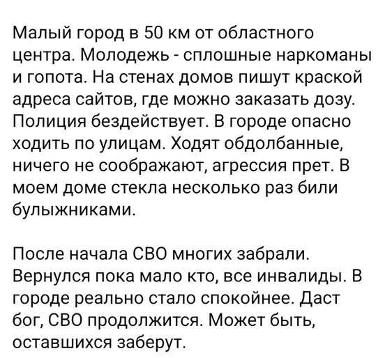 Но как умный человек, противник режима, не может понимать, что сейчас поражение в войне (или, как минимум, её неуспех) это обязательное условие серьёзных изменений в России? Как?