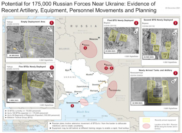 Точно таким же нагнетанием занимаются западные источники. В частности, газета «Washington Post», самая влиятельная газета мира, сообщает нам сейчас, буквально вчера, что «в планы Москвы входит широкое передвижение 100 батальонных тактических групп численностью около 175 тыс. человек. Нападение случится в начале 2022 года по 4-м фронтам».