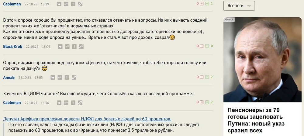 Зачем вы ВЦИОМ читаете? Вы ещё обсудите, чего Соловьёв сказал в последней программе.