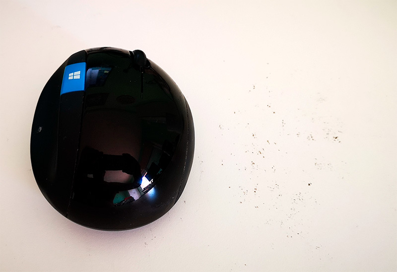 Вы, конечно же, будете смеяться, но у меня мышка гадит на стол. Майкрософтовская. Которая беспроводная и входит в комплект с клавиатурой MS Sculpt Ergonomic Desktop. Мне ее форма поначалу совершенно не нравилась (слишком пухлая она какая-то), но не хотелось держать на компе второй беспроводной модуль специально для мышки Logitech, поэтому старая мышка уехала на пенсию в стол, а к новой я начал привыкать.