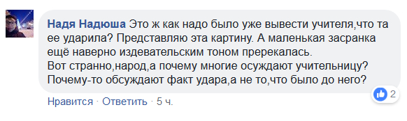 Но, что бы там не произошло, от этого зависит лишь, заслуживает ли наказания ученица. Училка, очевидно, должна быть наказана независимо от предыстории.