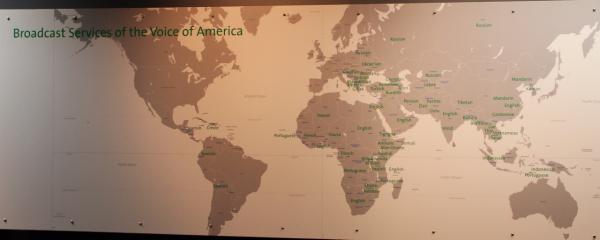 На дверях VOA размещены приветствия на большинстве языков вещания. Что характерно, приветствия на русском - нет. Но зато есть приветствие на украинском.