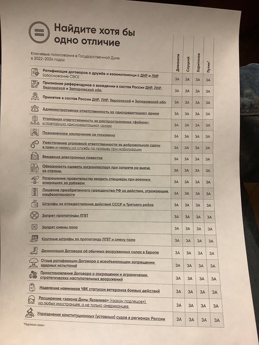 Давайте начнем с этого Даванкова. Как по мне, Даванков вообще ничем не отличается от двух других, утвержденных Кремлем кандидатов-спойлеров, Слуцкого и Харитонова, которым нарисуют определенный небольшой процент голосов. Когда Даванкова называют "антивоенным" кандидатом - это прямая ложь. Мало того что он голосовал за все самые репрессивные законы, по которым абсолютно невиновных людей бросают в тюрьму, он голосовал за "признание ДНР-ЛНР", то есть фактически за войну, также он и его партия активно поддерживают войну, ездят в Донбасс и снабжают путинскую армию дронами-беспилотниками.