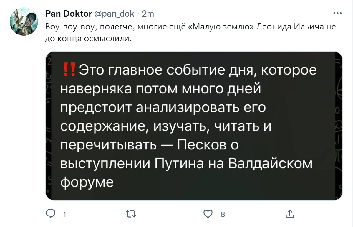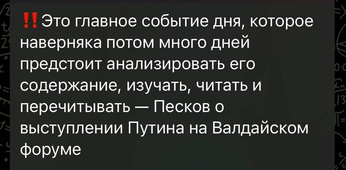 Ждем новый, действительно нужный РФ сегодня, после словоизвержения ВВП на Валдай,