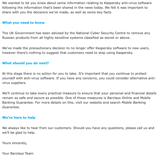 Я получил письмо от своего британского банка 2 декабря 2017 года, вот даже сохранил его: