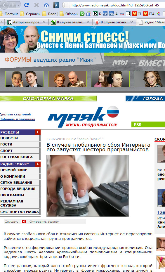 Если кто думает, что это шутка или фейк - вот снятый скриншот с сайте "Маяка", снимал сам. Да и если удалят, все равно в кеше поисковиков уже останется. Даже если весь Интернет и выключат шесть программистов.