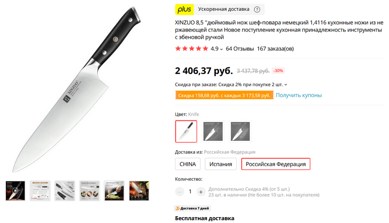 Только смущает, что остальные ножи с доставкой аж до 28 июня.... Ужос....