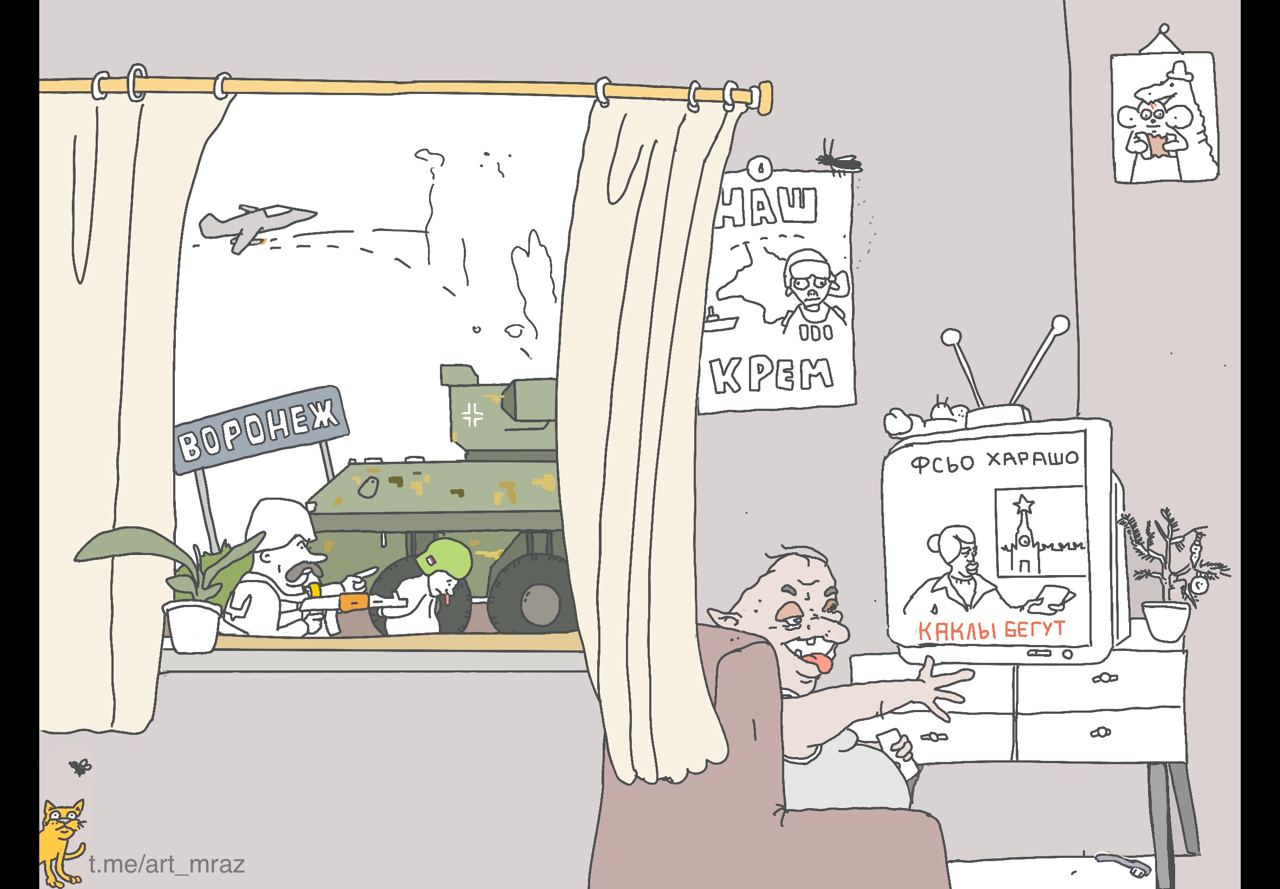 Сдается мне что если с территории Украины в сторону путинского бункера двинется колонна бронетехники, то ее никто не будет останавливать, у всех местных погранцов, ментов и росгвардейцев найдутся дела: ведь огурцы надо полить, картошку окучить.
