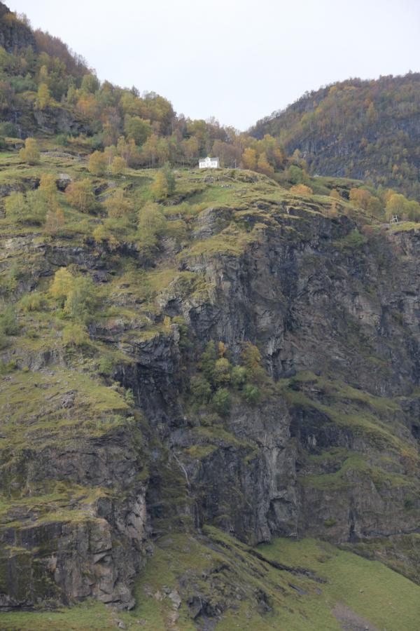 Обычная картина для Норвегии - одинокий домик, стоящий фиг знает где. Не сильно понятно, как его построили и как там вообще живут.