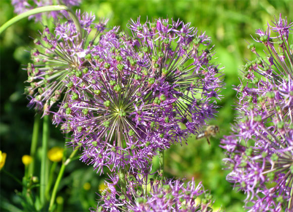 На среднем снимке, чуть справа от центра, видно пчелу с болтающимися на страшной высоте лапками. Экслер разрешил - пошла на посадку.