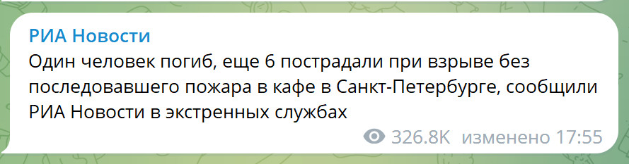 С учетом того, что кафе принадлежит Пригожину, могло быть всякое, но свалят на СБУ.